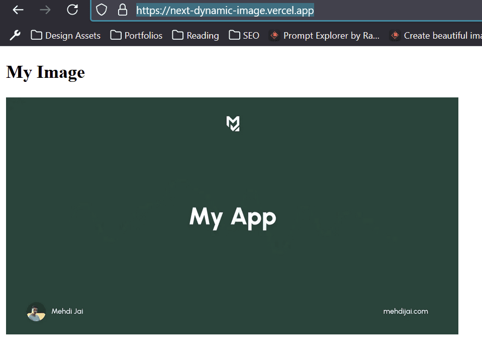 Now, Head to your browser and hit http://localhost:3000/og/here The result will be 👇